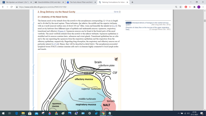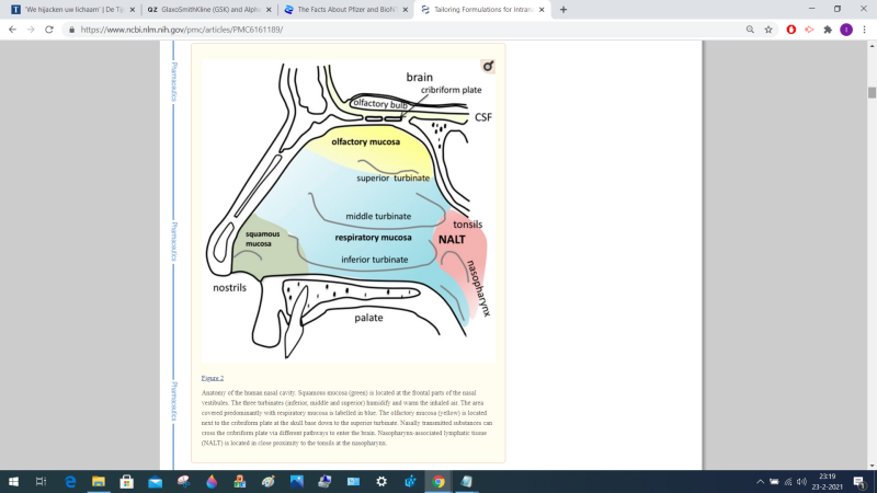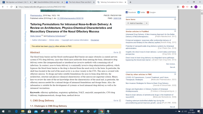 De Blood Brain Barrier is een dun membraan dat bovenin de neus zit en de hersenen beschermt. Medicijnen kunnen via de BBB rechtstreeks en vlug in de hersenen ingebracht worden. Hieronder ziet u hoe dit werkt. Op deze manier kregen mensen middels de Covid-teststokken het vaccin toegediend.