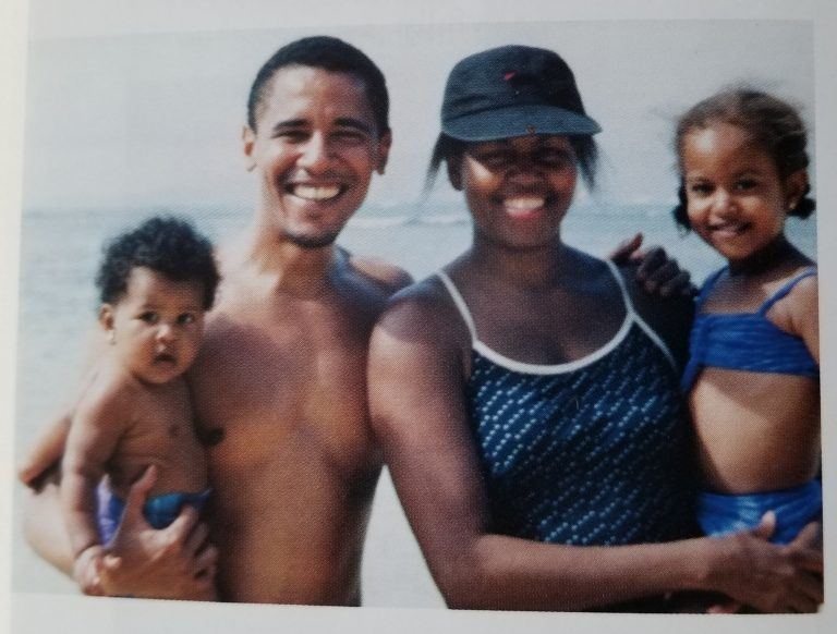 Deze foto staat in Michelle Obama's boek "Becoming". De grootte van Barack Obama's hoofd klopte niet ten opzichte van zijn lichaam, het was extreem duidelijk dat deze foto gephotoshopt was. Waarom zou Barack Obama gephotoshopt worden op een foto van zijn gezin met de kinderen als ze nog heel klein zijn? Er waren geruchten dat er helemaal geen foto's bestonden van de kinderen van de Obama's, met of zonder hun ouders. Die zijn er nu wel. Bij deze foto was goed te zien dat hij aangepast was. Inmiddels is de foto veranderd en heeft Obama's hoofd de grootte die passend is. Bij een check door Jpegsnoop om te kijken of de foto geshopt is was de uitkomst ja. Zelf denk ik dat je nog steeds enigszins kunt zien dat Obama's hoofd op zijn lijf is geplakt bij de aanhechting met de nek, maar het is lang zo duidelijk niet meer.