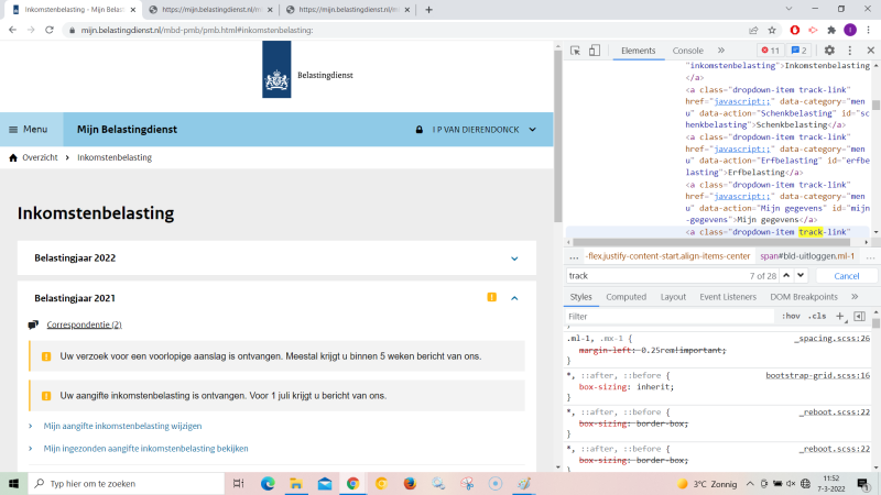 Belastingdienst heeft als ik ingelogd ben een track-link.