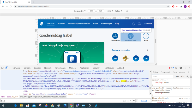 Paypal met een data-tracking-url, ook als ik ingelogd ben.